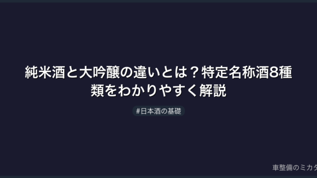 純米酒と大吟醸の違いを精米歩合・醸造アルコール・味わいの3軸で徹底解説。特定名称酒8種類の分類表や選び方のポイントも紹介します。